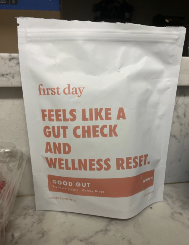 First Day markets itself as a 3-in-1 pre, post, and probiotic in gummy form. The formula includes Livaux (a clinically studied prebiotic), IS-2 Bacillus coagulans (a probiotic targeting constipation and vaginal flora), and OPTIBIOME BS50 (a Bacillus subtilis strain that targets bloating and gas).